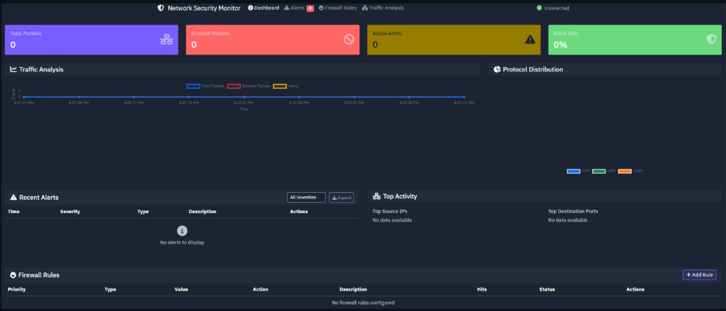 Real-time network security monitoring with Flask + Socket.IO.